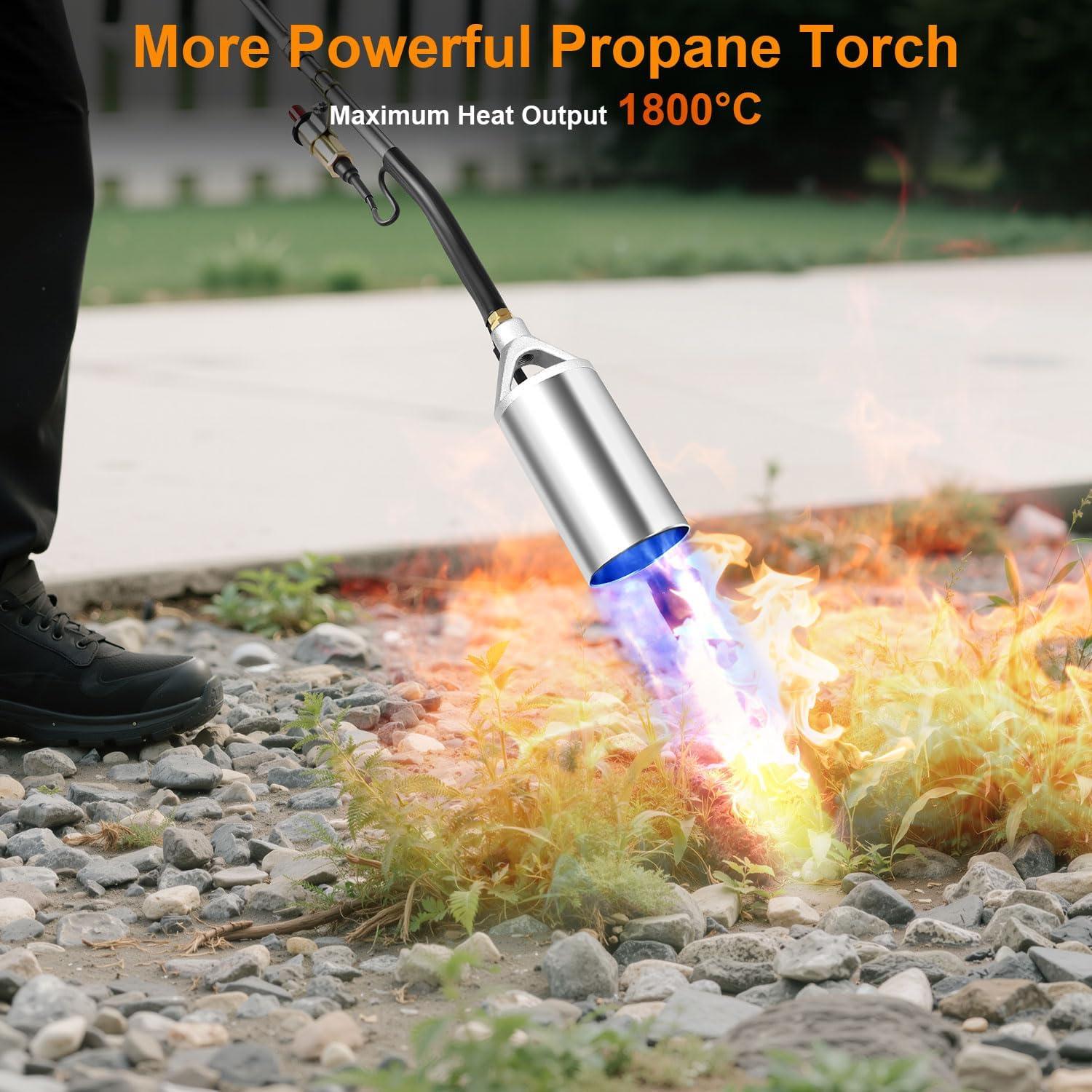 【No Chemical Weeding Solution】This is a Environmentally Friendly way to solve the weeds between hard to reach crevice efficiently. With the help of this efficient assistant, you can easily and efficiently complete many things. Burn weeds and stumps, melt snow/ice, sear meat or fish, light fires, solder, do wood grain burning, soften asphalt, remove paint from non-flammable surfaces and more with this propane torch,it's ideal for home, garden, farm, industrial and construction use.