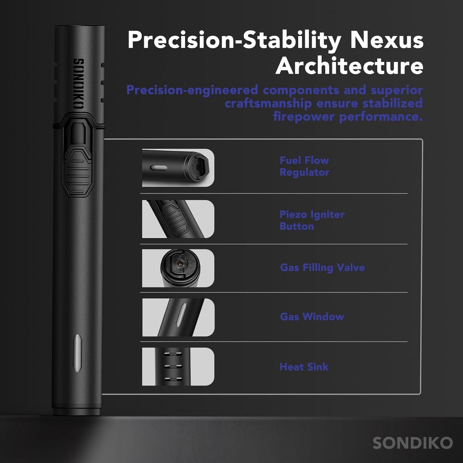 【Upgraded Pen Torch Lighter】Compared to similar pen lighter on the market, our flame adjustment button has been upgraded and optimised. You don't need to gouge out the buttons from the bottom of the product to adjust the fire. The flame can be adjusted by gently adjusting the buttons on the body of the torch. More convenient design to meet your need.